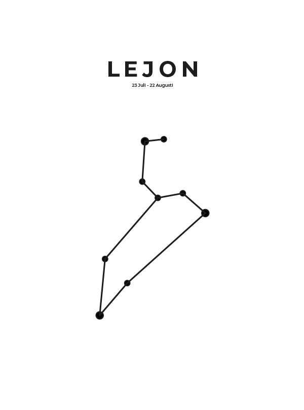 Personlig poster tavla med stjärntecken lejon som infaller 23 juli till 22 augusti. Välj bakgrund, stil, namn och text som passar eran personliga stil och heminredning för barnrummet.
